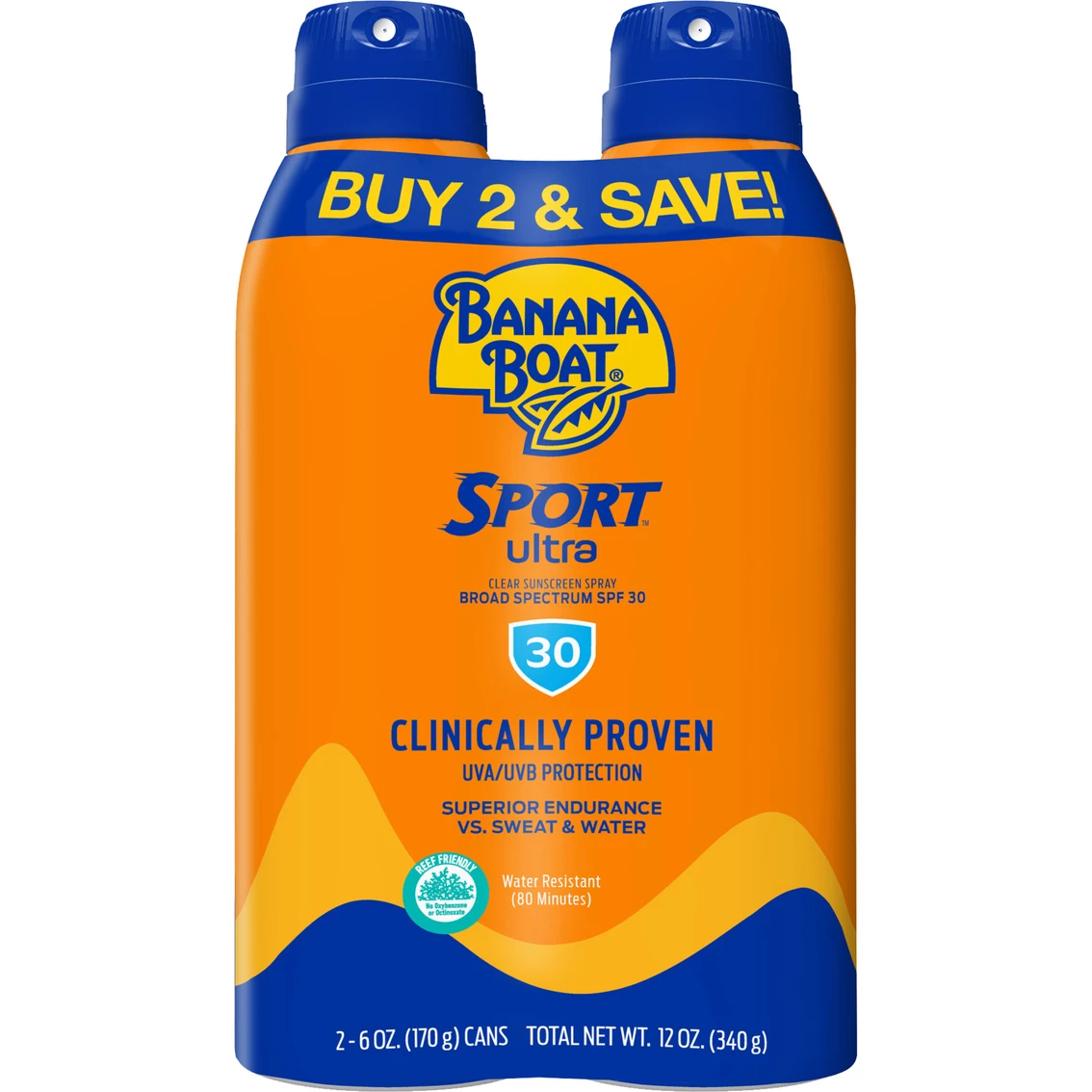 Banana Boat Sport Ultra Clear Spray Sunscreen provides strong, reef friendly protection that absorbs quickly, is non-greasy and won’t run into your eyes. These lightweight, clear sprays are designed especially for sport enthusiasts and other active individuals who need sport-strength sun protection that doesn’t play around! Banana Boat Sport Ultra Clear Spray Sunscreen has superior endurance versus sweat and water and will last as long as the fun does! Reapply this safe and effective broad spectrum UVA and UVB protection as directed on the product label. Protect the fun on earth with Banana Boat!