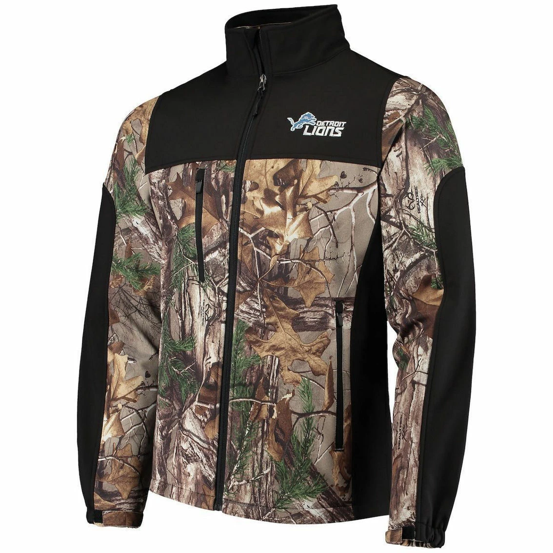 - Whether you’re outdoors or at the game, you sport your devotion to the Detroit Lions. Be ready, rain or shine, with this Hunter Softshell full-zip jacket. With a camo pattern and crisp Detroit Lions graphics, you’ll turn heads and show off as the top fan.