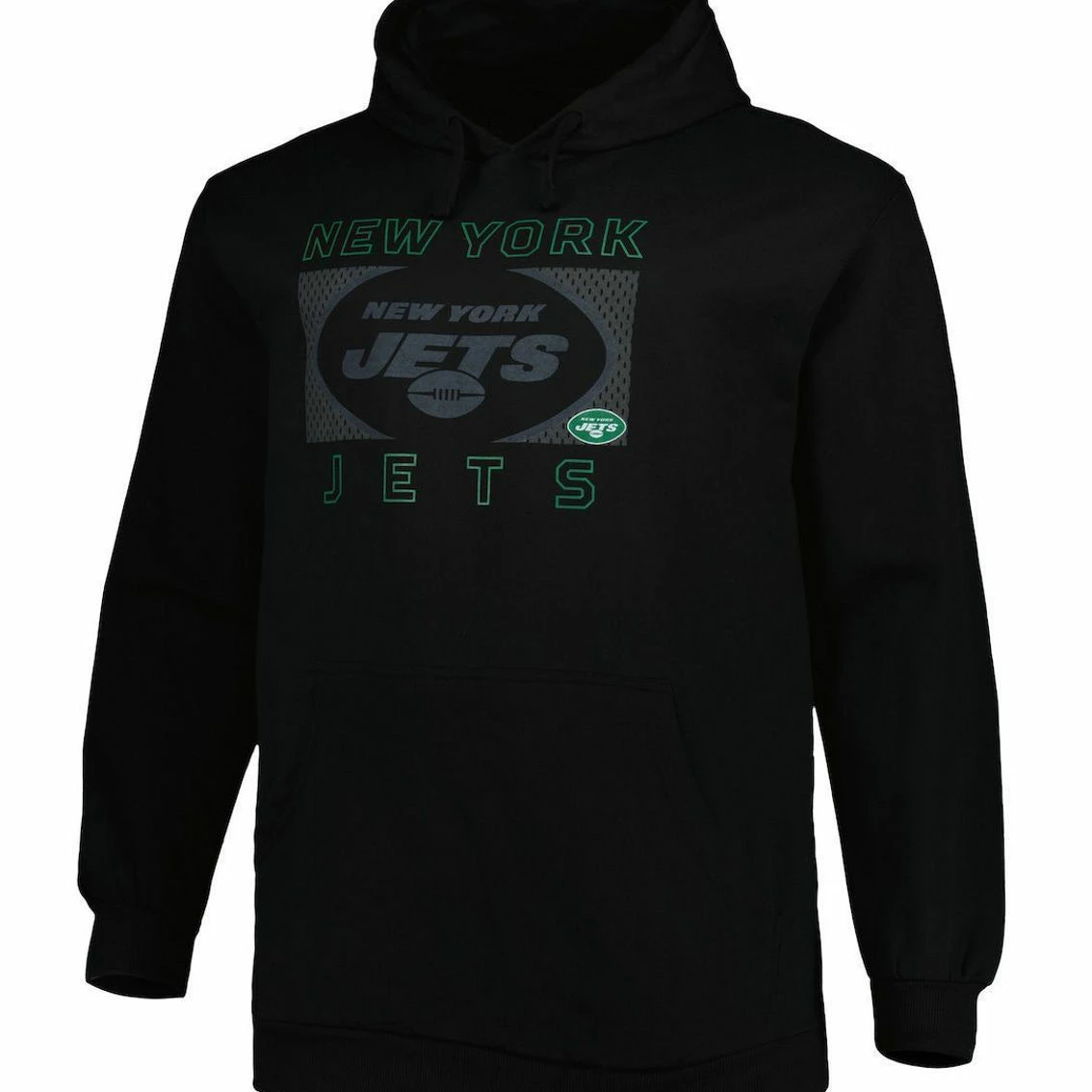 - Add a pop of New York Jets color to your collection of game day gear with this Fanatics Branded hoodie. It features vibrant New York Jets graphics on black fabric to highlight your devotion to the squad. Plus, the cozy midweight construction, soft fabric and front pouch pocket work together to keep you comfortable all day long.