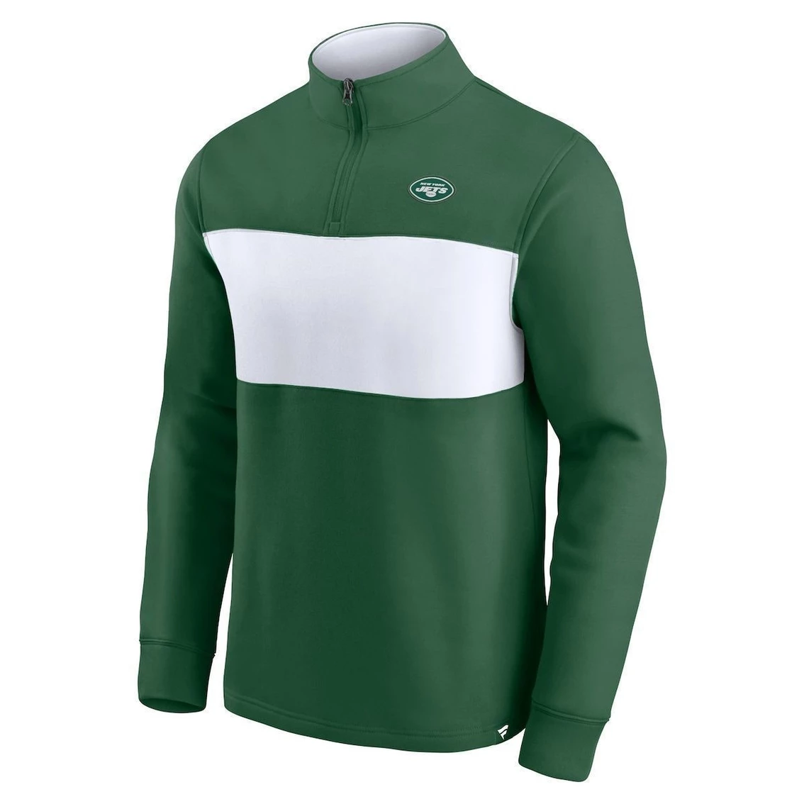 - Enjoy an extra layer that’s chock-full of New York Jets pride with this Block Party quarter-zip jacket from Fanatics Branded. It’s sure to be a standout in your collection thanks to its authentic colors and classic, lightweight design. The crisp New York Jets logo on the torso will show everyone you’re a die-hard fan.