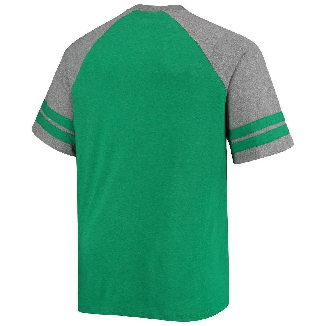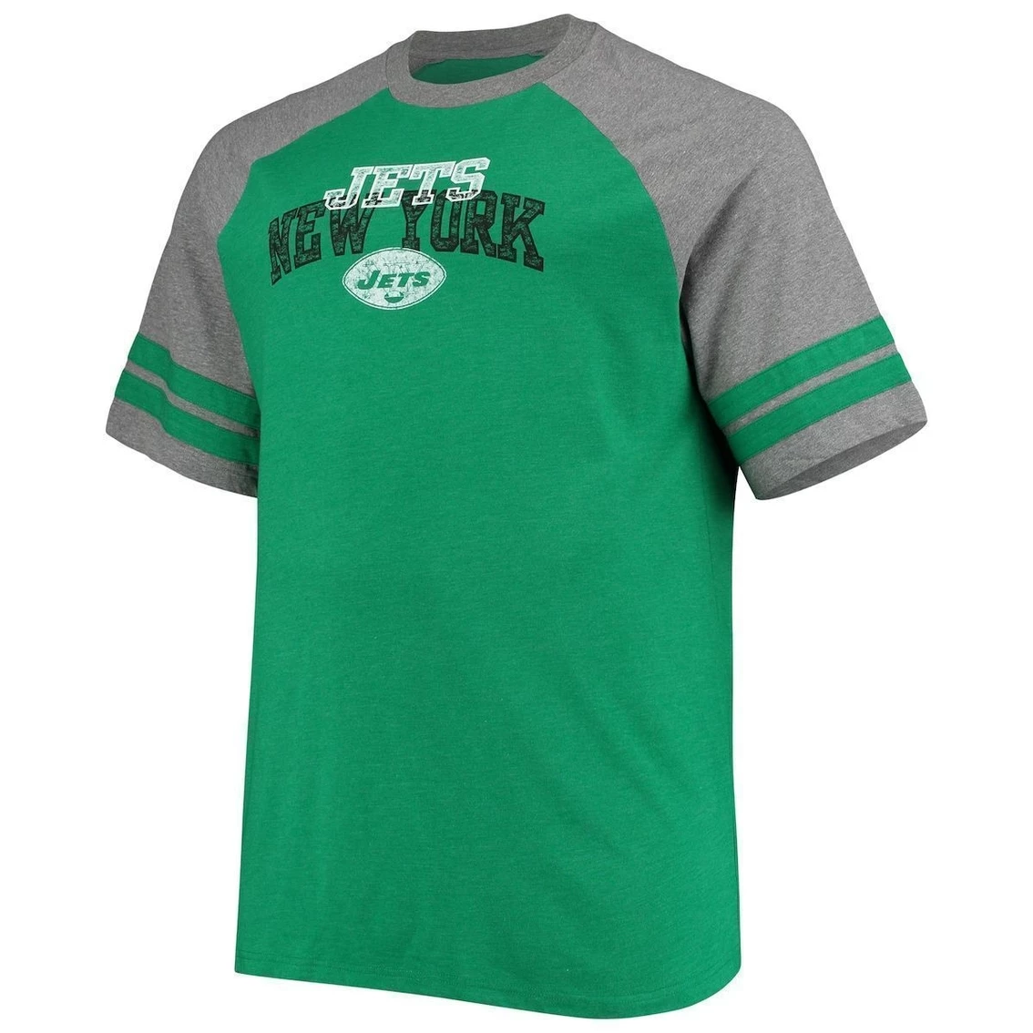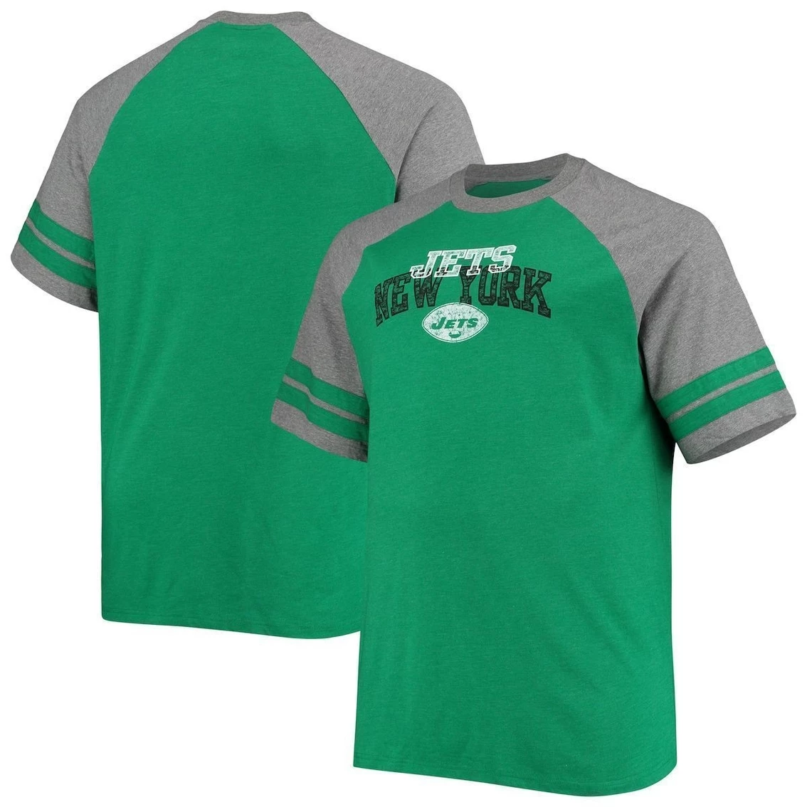 Fanatics Branded Men's Kelly Green/Heathered Gray New York Jets Big & Tall Throwback 2-Stripe Raglan T-Shirt