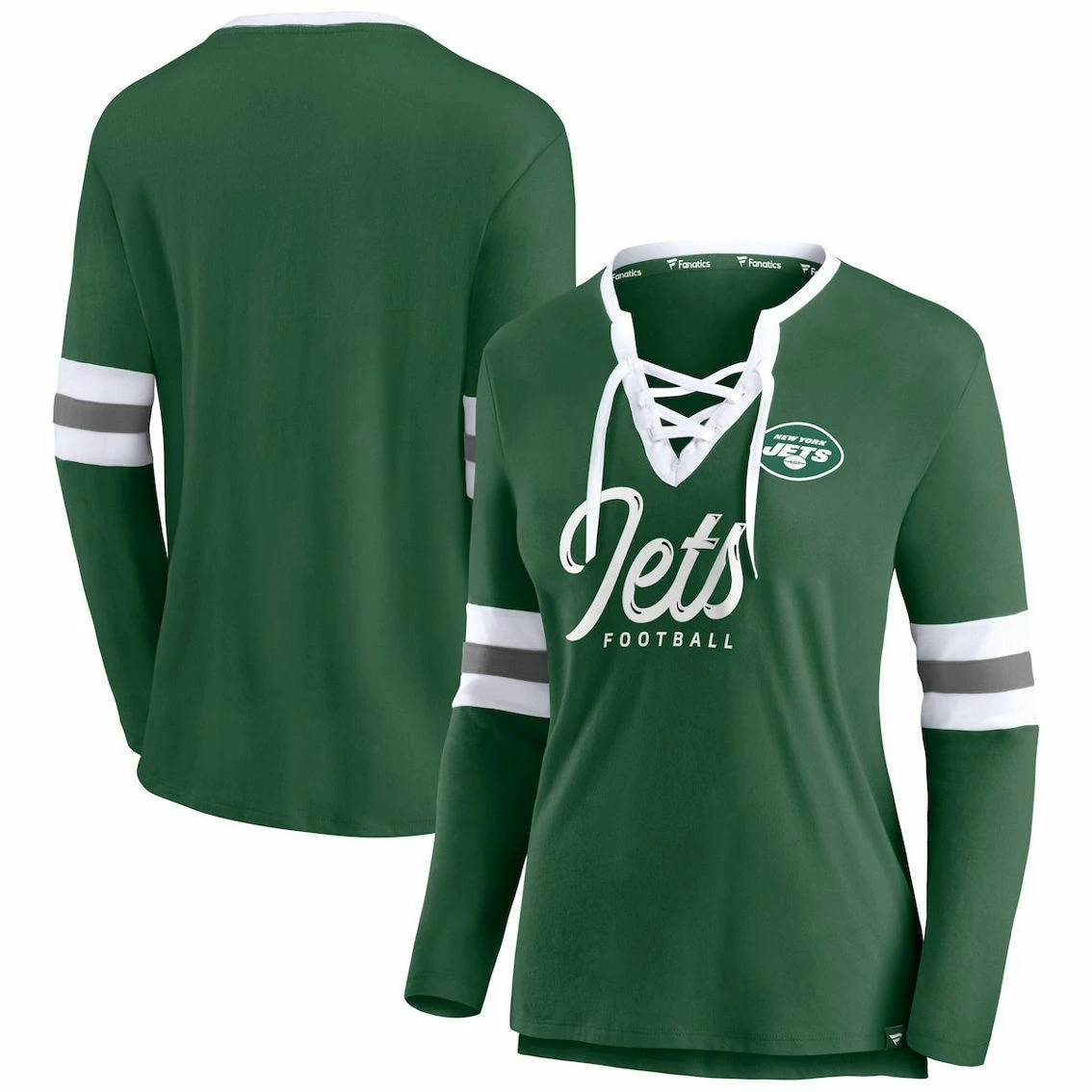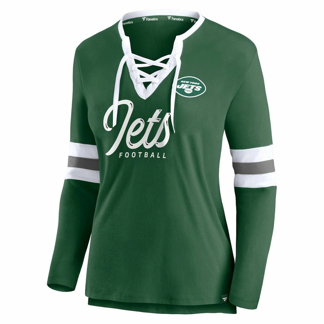 Fanatics Branded Women's Green New York Jets Block Party Team Script Lace-Up Long Sleeve T-Shirt