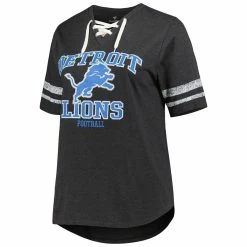 SKU: DSCO1161584561 Category: Detroit Lions Tags: Clothing & Accessories, Fanatics Branded Women's Heather Charcoal Detroit Lions Plus Size Lace-Up V-Neck T-Shirt, T-Shirts