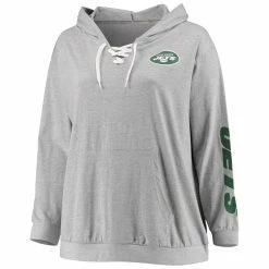 Be the first to review “Fanatics Branded Women's Heathered Gray New York Jets Plus Size Lace-Up Pullover Hoodie” Cancel reply