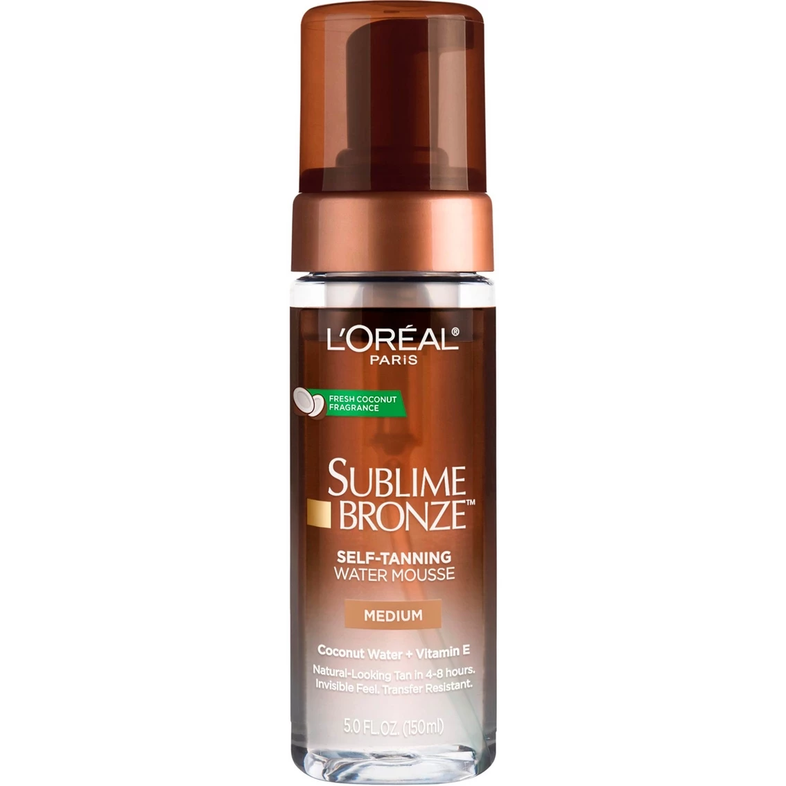 L’Oreal Paris Sublime Bronze Hydrating Self-Tanning Water Mousse instantly provides a natural-looking tan, sunkissed glow and even finish. Size: 5 oz.