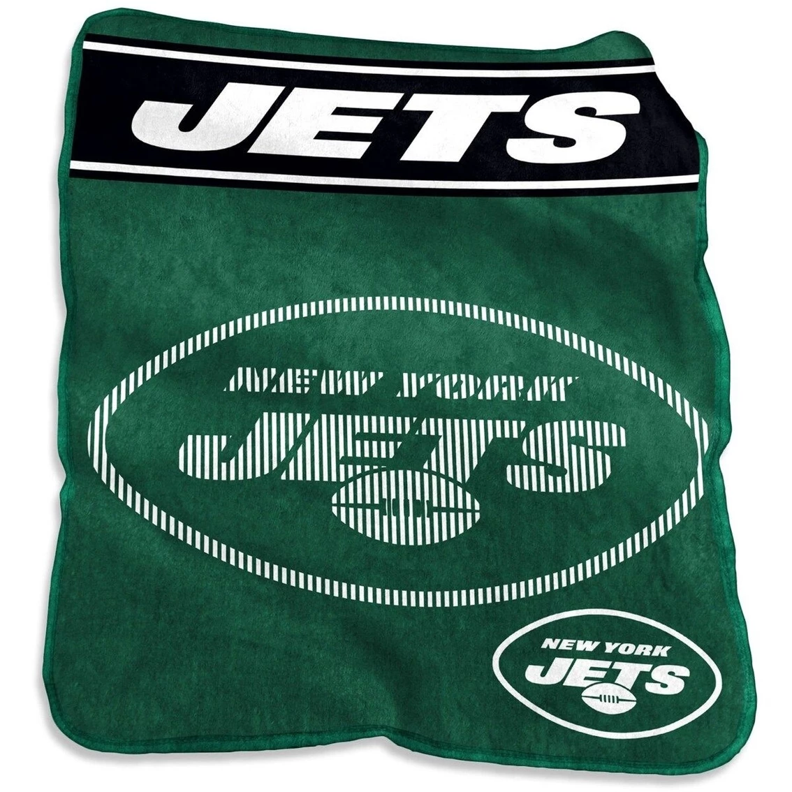 - When cold weather falls on New York Jets game day, use this XL Raschel Plush throw blanket to stay toasty warm while tailgating, at the stadium or watching from the comfort of home. Its vibrant design features a huge New York Jets logo and team colors all over. The soft material also creates a super-cozy feel that’s perfect for chilly temperatures.