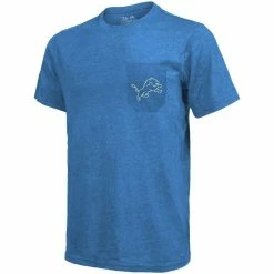 - You cheer so loud at the Detroit Lions games that you’re used to losing your voice. Now, you can highlight your unwavering passion without having to say a single word by ordering this festive Tri-Blend Pocket T-shirt from Majestic Threads! With a front chest pocket and cool Detroit Lions graphics on the front and back, it’ll be easy for people to see that you’re a true fan.