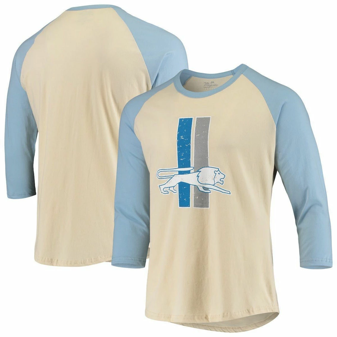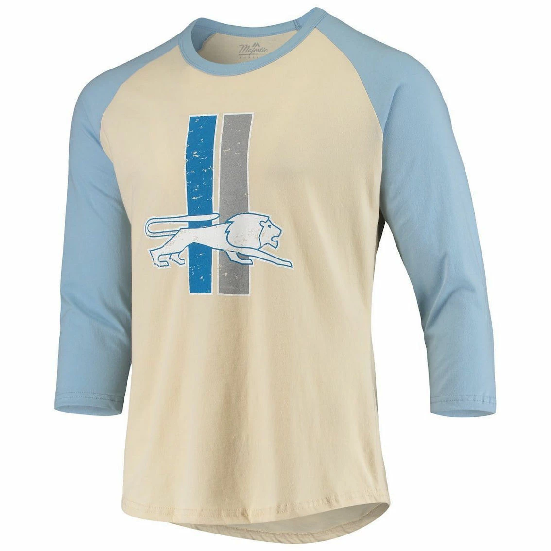 - Take your Detroit Lions apparel to a bygone era with this Gridiron Classics 3/4-sleeve T-shirt from Majestic Threads. It features throwback Detroit Lions graphics printed in a distressed design. The raglan sleeves also provide more room for better movement.