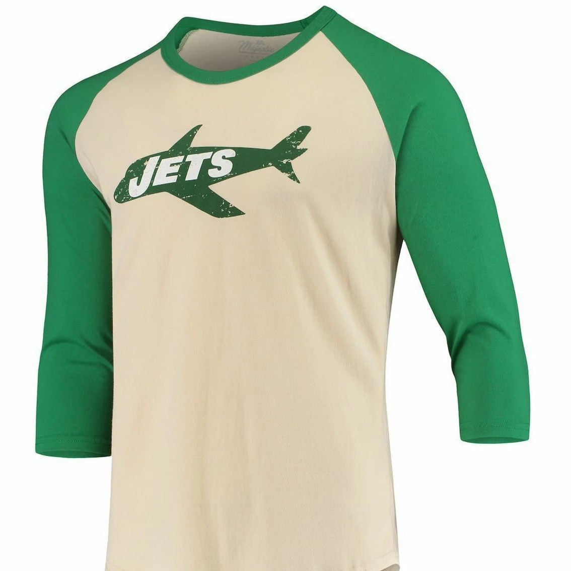 - Take your New York Jets apparel to a bygone era with this Gridiron Classics 3/4-sleeve T-shirt from Majestic Threads. It features throwback New York Jets graphics printed in a distressed design. The raglan sleeves also provide more room for better movement.