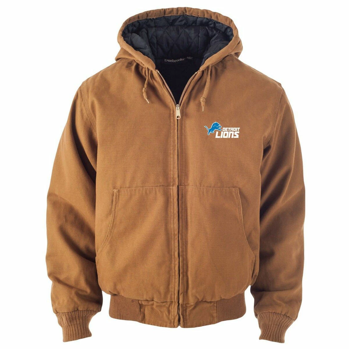 - Add the perfect outdoor addition to your Detroit Lions rotation with this Dakota Canvas full-zip jacket from Dunbrooke. Not only is it wind and water-resistant, but it features a quilted lining and an adjustable hood, meaning you’ll be able to stay warm and protected from the elements outside. Embroidered Detroit Lions graphics on the chest leave no doubt that you are the team’s #1 fan.