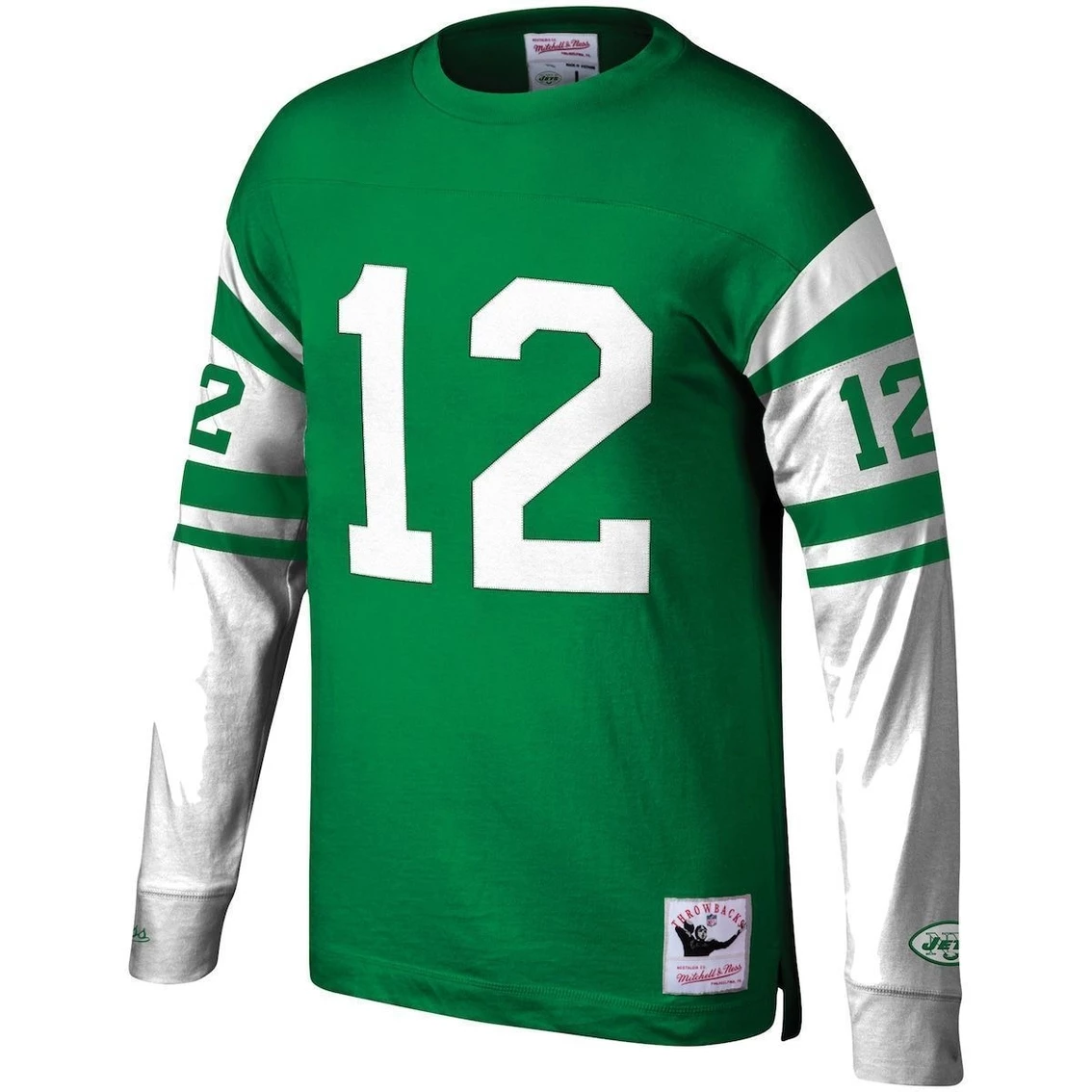 Mitchell & Ness Men's Joe Namath Kelly Green New York Jets Throwback Retired Player Name & Number Long Sleeve Top