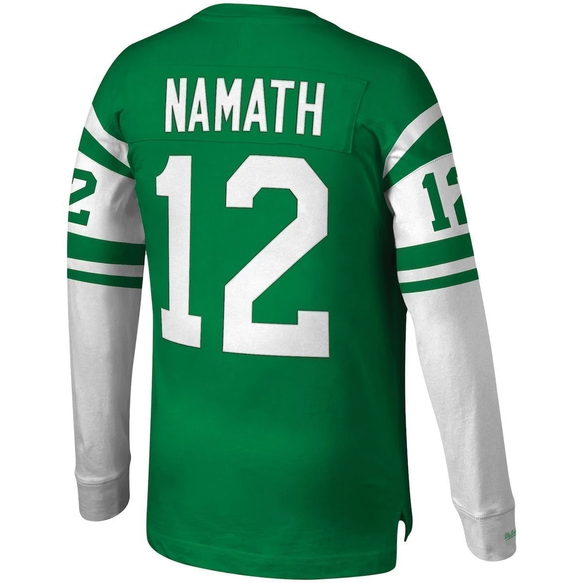- Back in the day, Joe Namath was an absolute force on the field for the New York Jets. He was a key part of much of the team’s success, so celebrate his career with this Throwback Retired Player Name and Number T-shirt from Mitchell & Ness. It features tackle twill appliques for longtime durability so you can properly represent one of the NFL’s greats for years to come.
