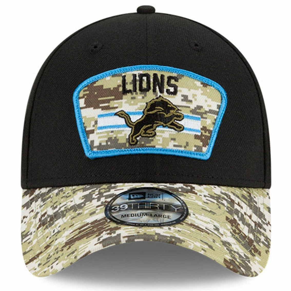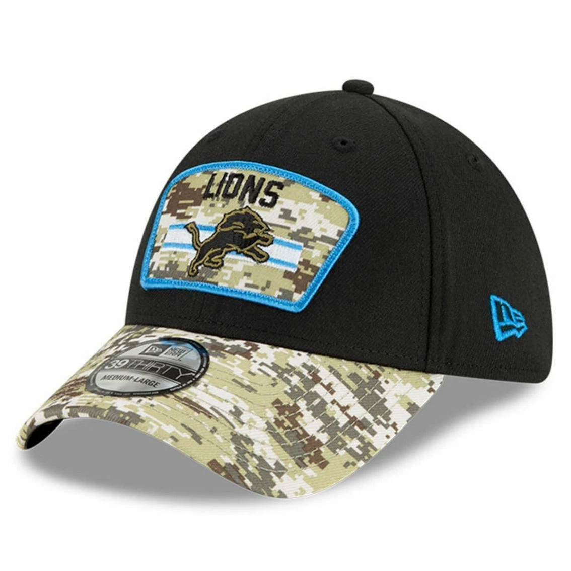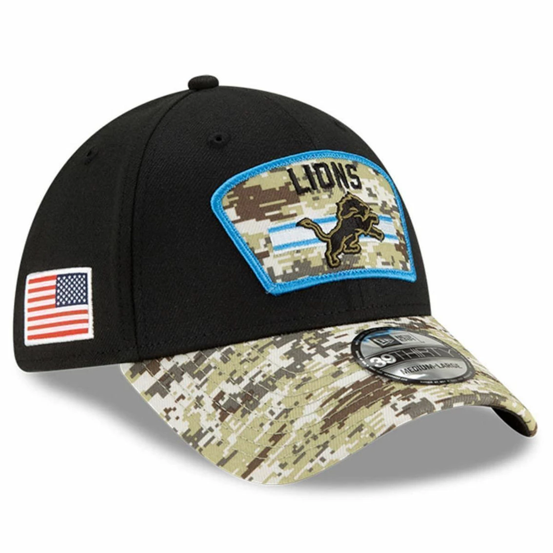 - Honor our service members while supporting your favorite team in this year’s Official NFL Salute To Service Collection. This two-tone 39THIRTY Flex Hat is constructed of black polyester on the crown and a camo patterned polyester fabric on the visor. The front crown features a fabric applique with custom Detroit Lions art. This patch uses the same camo fabric from the visor and is surrounded with contrasting team color embroidery. Finishing touches include an embroidered American flag patch on the right wear and the official NFL ”Salute to Service” patch on the rear. Join your favorite Detroit Lions players as they wear this cap on the field during the month of November. The NFL does not profit from the sale of Salute to Service products. Charitable contributions are awarded by the NFL Foundation to the NFL’s military nonprofit partners. For more information, please visit www.NFL.com/causes/salute.