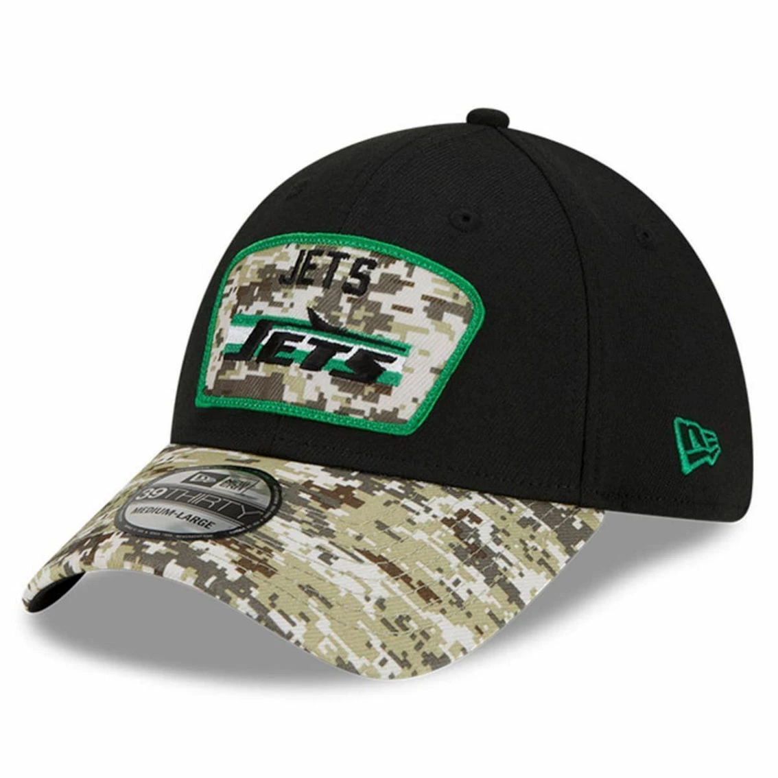 - Honor our service members while supporting your favorite team in this year’s Official NFL Salute To Service Collection. This two-tone 39THIRTY Flex Hat is constructed of black polyester on the crown and a camo patterned polyester fabric on the visor. The front crown features a fabric applique with custom New York Jets art. This patch uses the same camo fabric from the visor and is surrounded with contrasting team color embroidery. Finishing touches include an embroidered American flag patch on the right wear and the official NFL ”Salute to Service” patch on the rear. Join your favorite New York Jets players as they wear this cap on the field during the month of November. The NFL does not profit from the sale of Salute to Service products. Charitable contributions are awarded by the NFL Foundation to the NFL’s military nonprofit partners. For more information, please visit www.NFL.com/causes/salute.