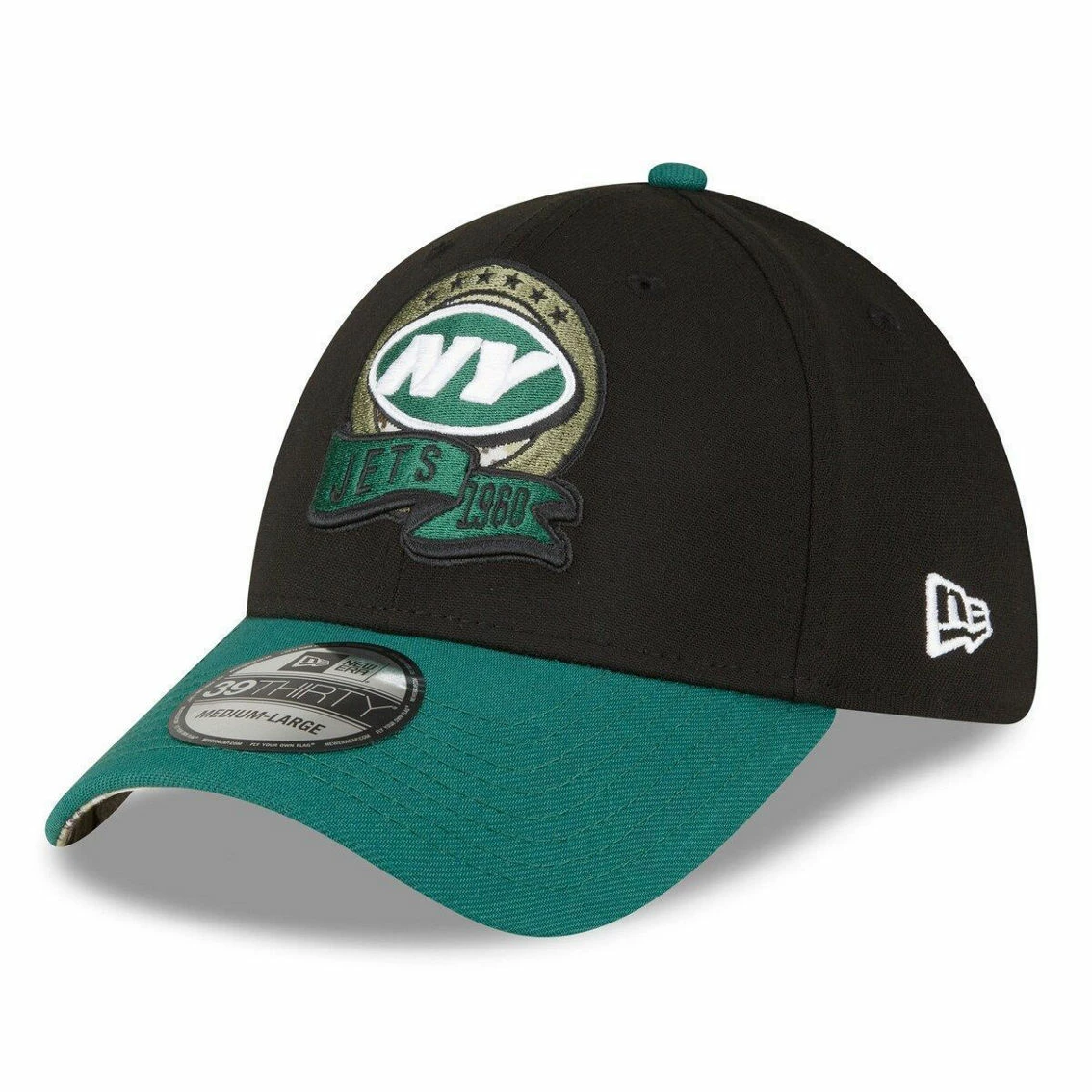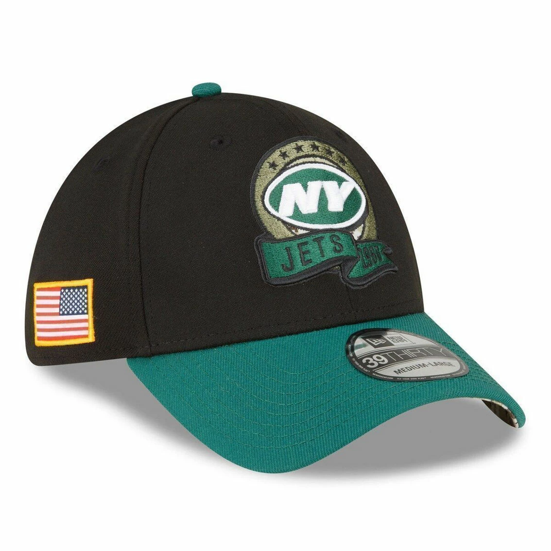 - Honor our service members while supporting the New York Jets with this 2022 Salute To Service 39THIRTY Flex Hat. This New Era hat proudly displays an embroidered New York Jets logo with camouflage detail behind it, as well as a banner underneath that features the team’s name and year they joined the NFL. The visor has a camouflage pattern underneath, matching the Salute To Service ribbon embroidered on the rear. A woven tag with an American flag adorns the right side of the hat. The NFL does not profit from the sale of Salute to Service products. Charitable contributions are awarded by the NFL Foundation to the NFL’s military nonprofit partners. For more information, please visit www.NFL.com/causes/salute.