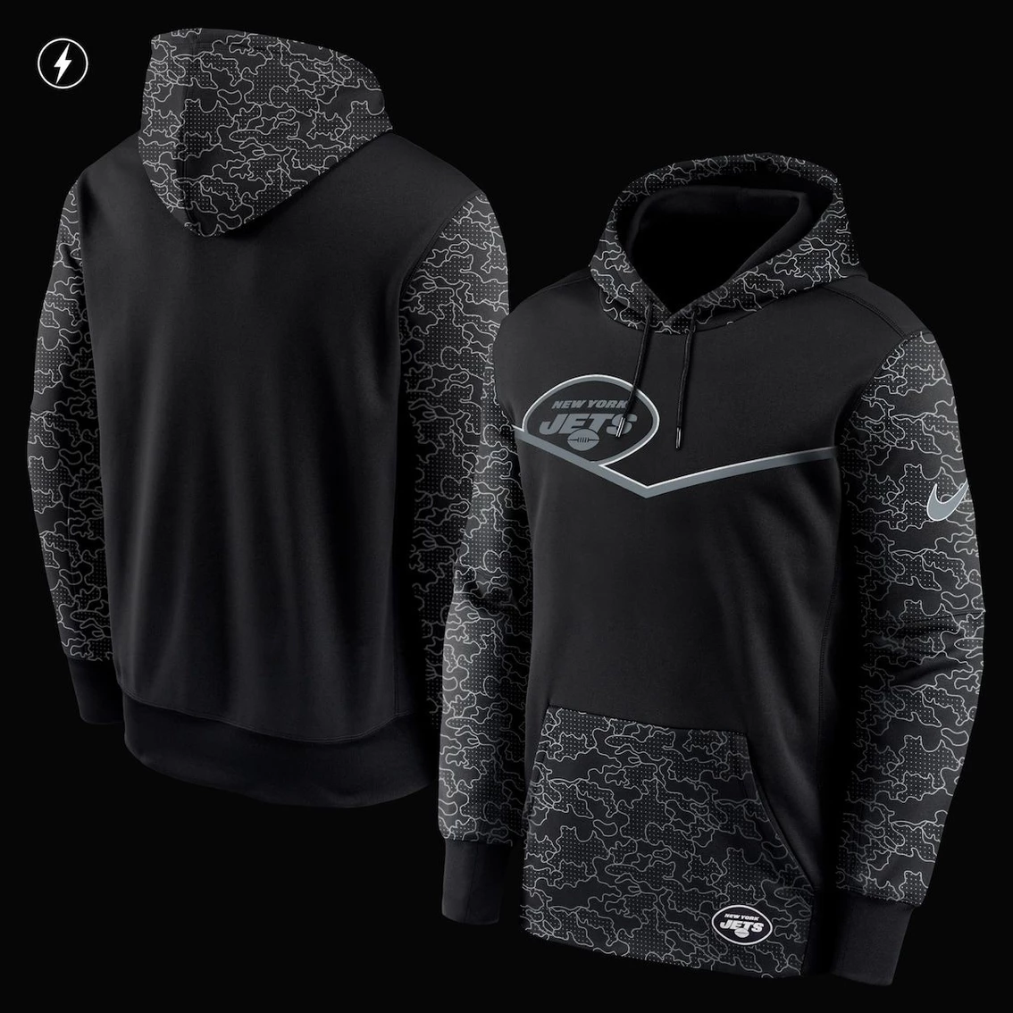 - No matter the weather, stand out in New York Jets style with this RFLCTV Chevron hoodie from Nike. It features an eye-catching design with reflective details and moisture-wicking Dri-FIT fabric for extra comfort. With an adjustable hood and warm design, this New York Jets hoodie is a must-have for any cold game day.