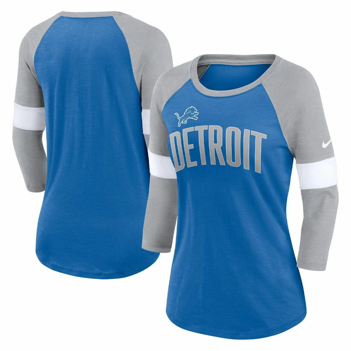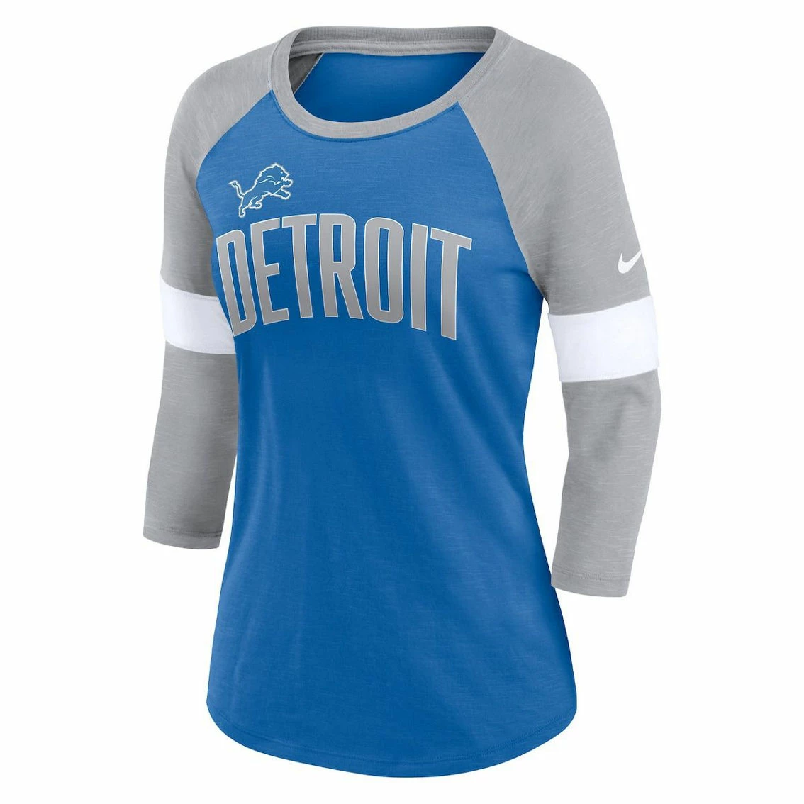 - Put eyes on your Detroit Lions pride with this Nike Football 3/4-sleeve T-shirt. Roomy raglan sleeves and blended fabric make for the ultimate casual feel. In addition, signature Detroit Lions graphics and colors let everyone know who you cheer for on game day.