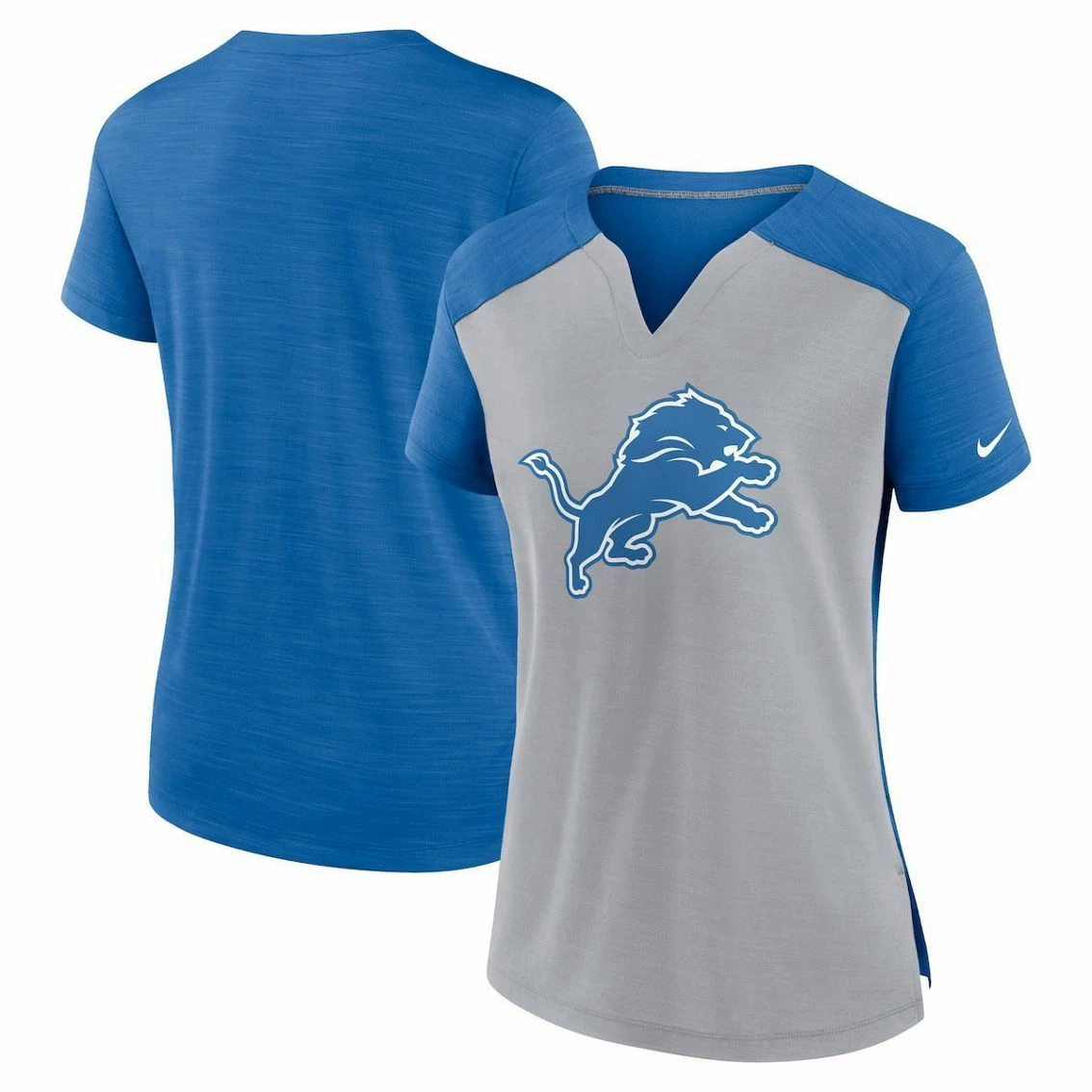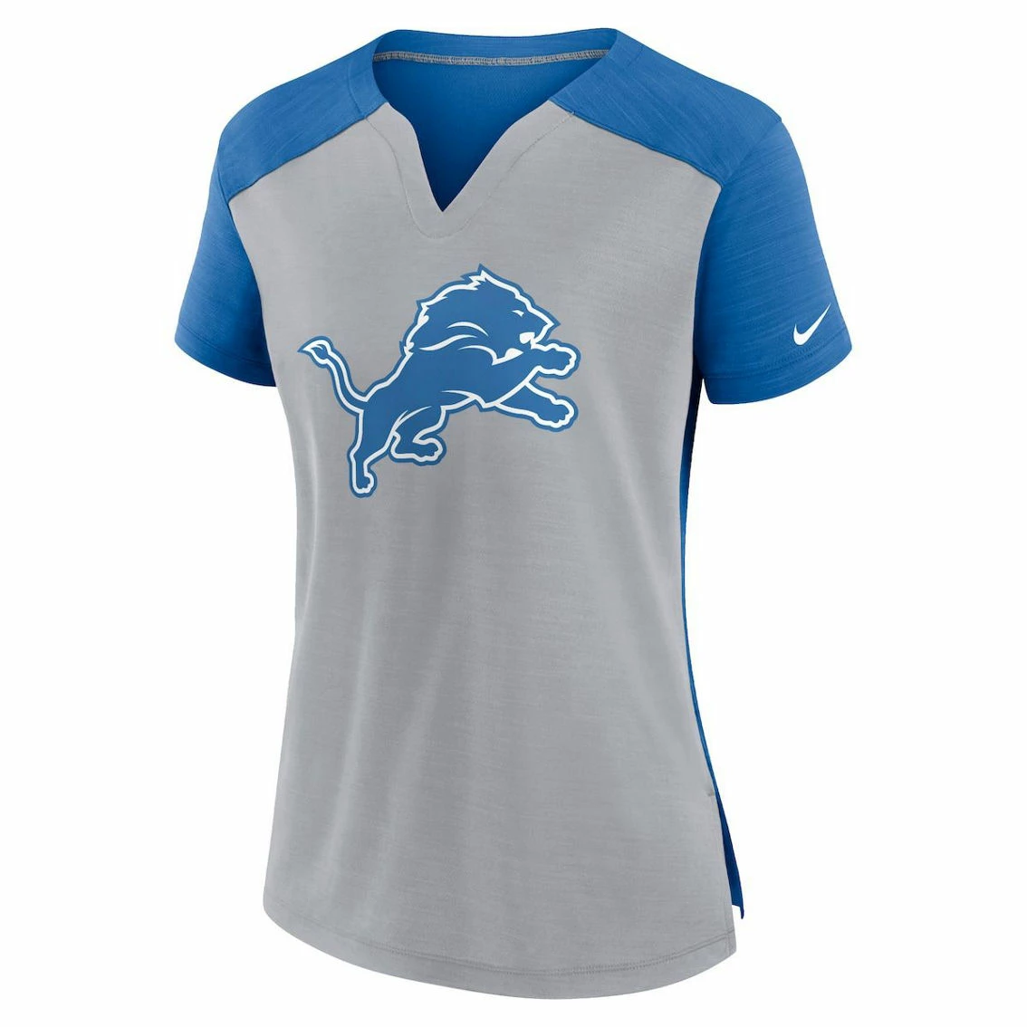 - Make your Detroit Lions spirit pop with this Impact Exceed T-shirt from Nike. It features a two-tone design in team colors that highlight the Detroit Lions logo and a chic notch neckline. In addition, moisture-wicking Dri-FIT technology keeps you feeling dry and comfortable.