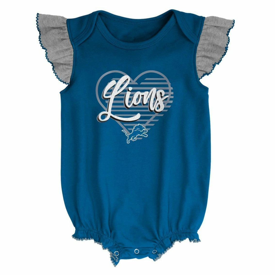 - Show everyone that the Detroit Lions have all of your little one’s love with this three-piece set. It features adorable Detroit Lions graphics on the bodysuit, bib and coordinating booties to further elevate their blossoming fandom. Plus, the ultra-soft fabric and snap closures ensure easy changing and total comfort.