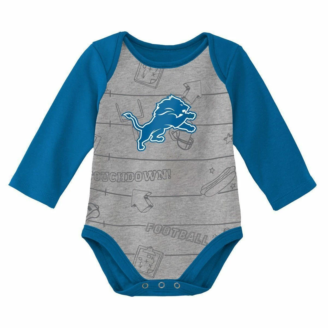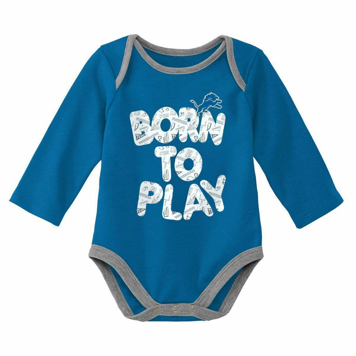 - Get your tiny Detroit Lions supporter to look like part of the fan club in one of these adorable Born to Play bodysuits. This two-pack set features printed Detroit Lions graphics with a spirited saying. The three-snap bottom and lap shoulder neckline also make dressing a breeze.