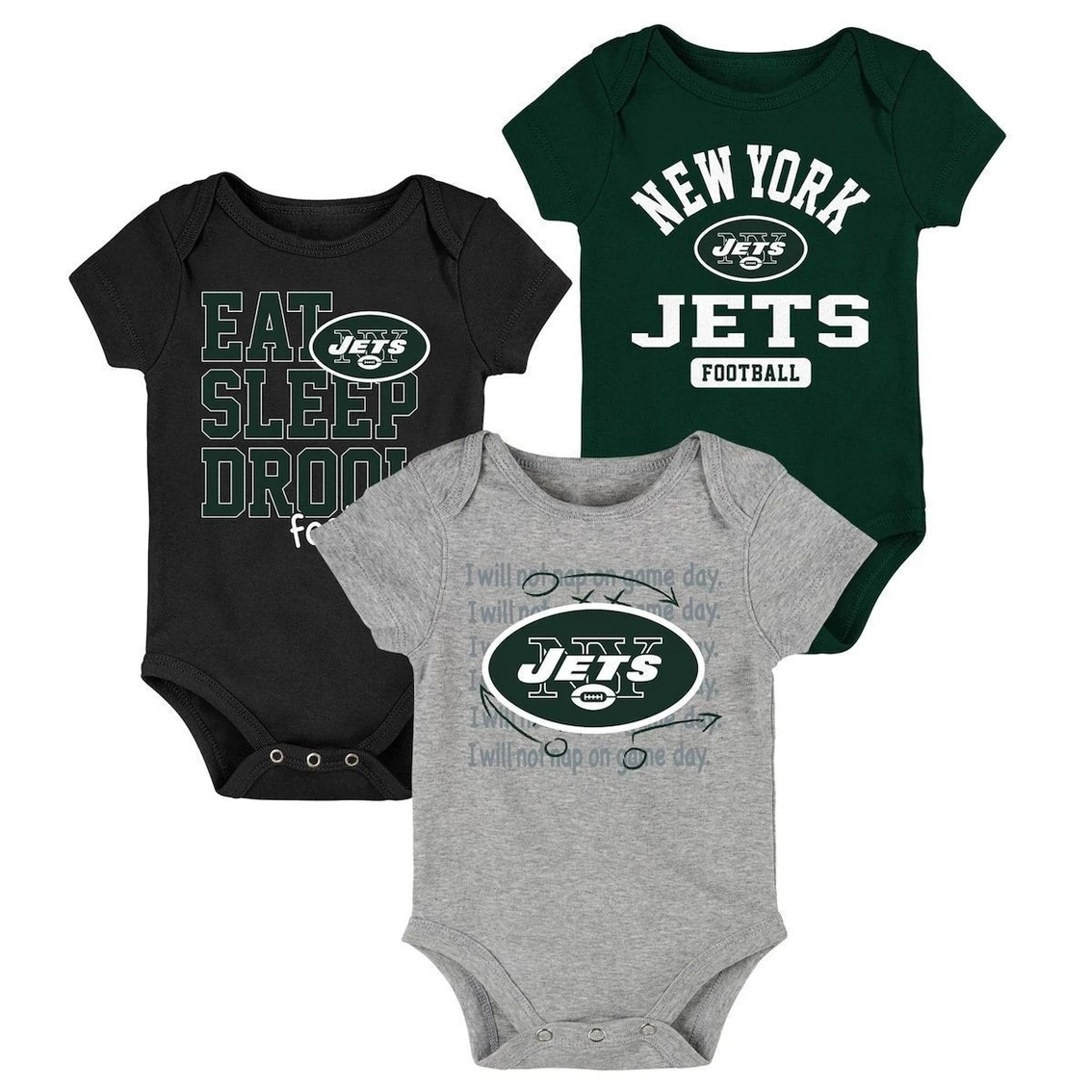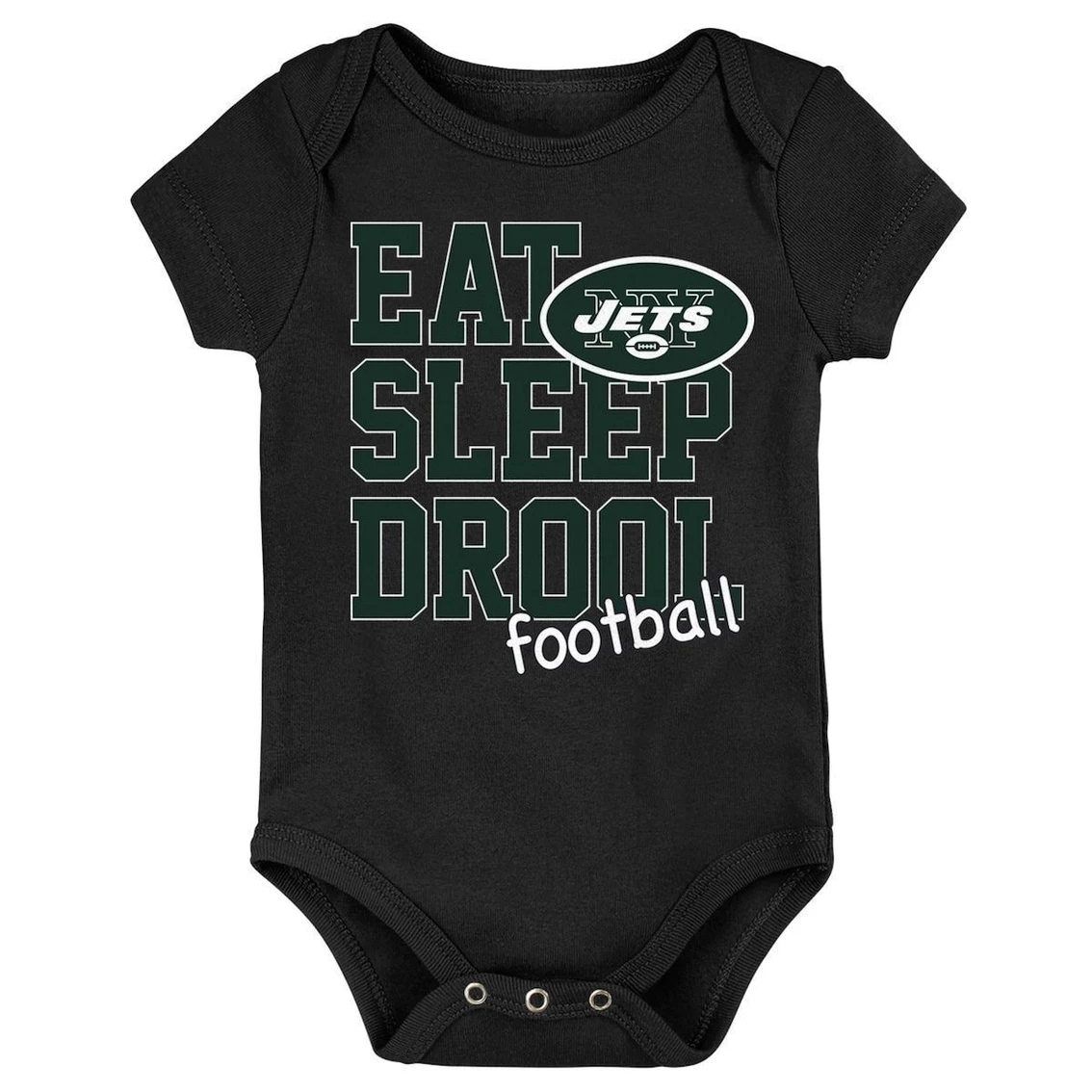 - Get several new outfit options for your little one with this Eat, Sleep, Drool three-piece bodysuit set. Each one sends a different message, but all say your kiddo is part of the New York Jets fan club. Thanks to their soft fabric and three-snap closures, these bodysuits ensure your adorable young fan will look and feel as great as can be on game day.