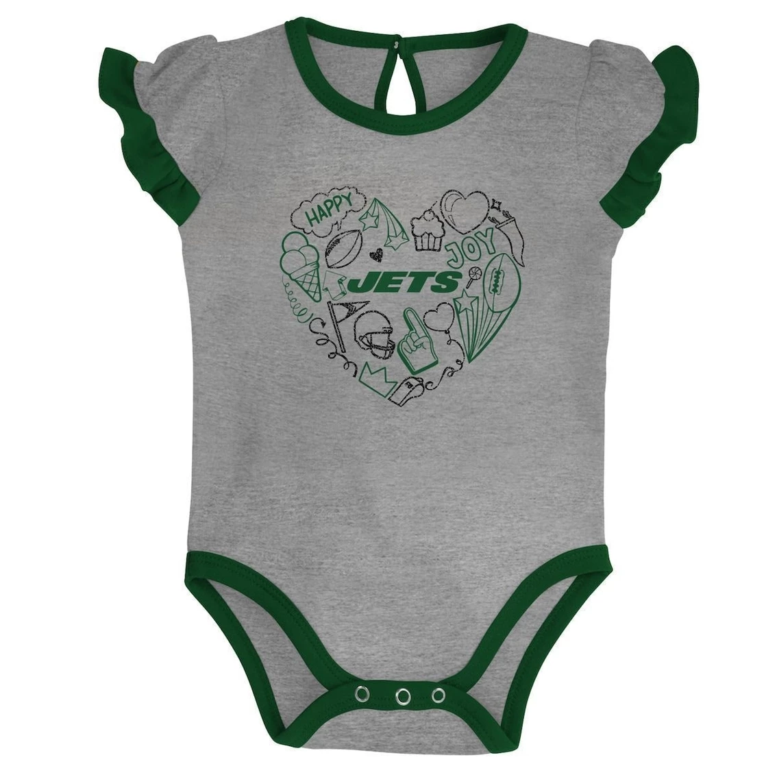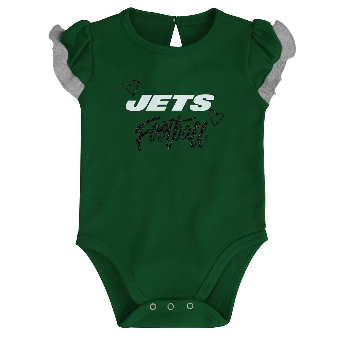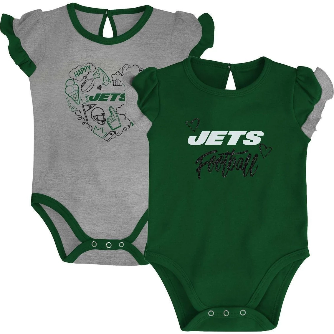 - Slip your little one into this Too Much Love set for an adorable dose of New York Jets spirit. It includes two bodysuits decorated in charming New York Jets colors and graphics with cute glitter details. Soft fabric and easy dressing features make this set super comfortable.