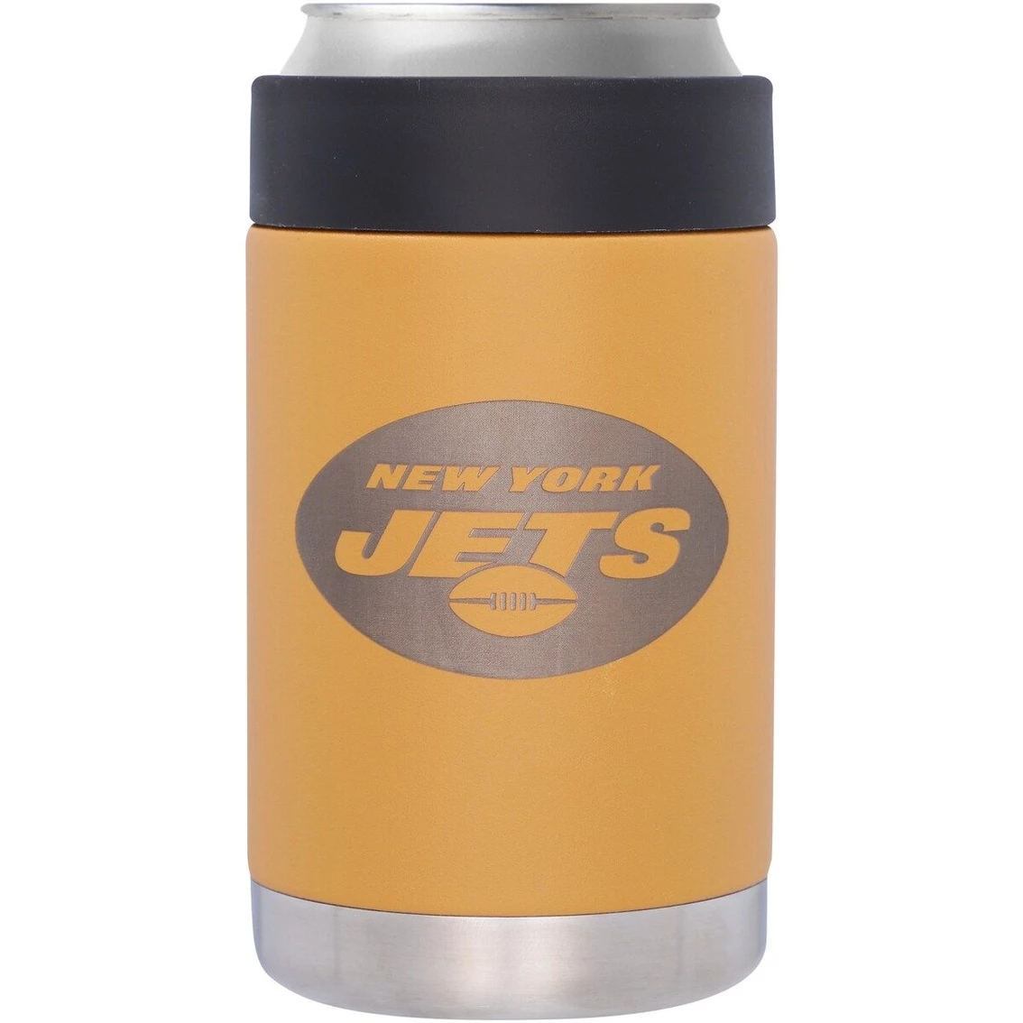 - When you’re getting ready for New York Jets game day, be sure to keep your drink snug in this Stainless Steel Canyon can holder. It fits most 12oz. slim cans and can keep your drink cold for hours, so you can enjoy it for longer. The etched New York Jets graphics make your die-hard fandom loud and clear as you enjoy your drink of choice.