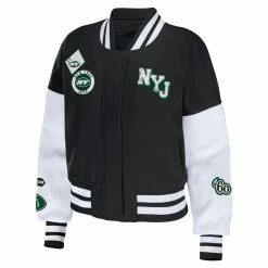 SKU: DSCO1147886416 Category: New York Jets Tags: Clothing & Accessories, WEAR by Erin Andrews Women's Black/White New York Jets Full-Zip Varsity Jacket, Women's Activewear