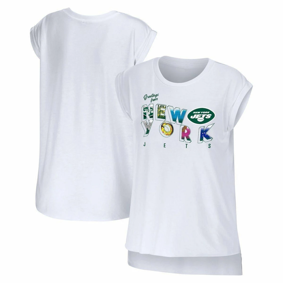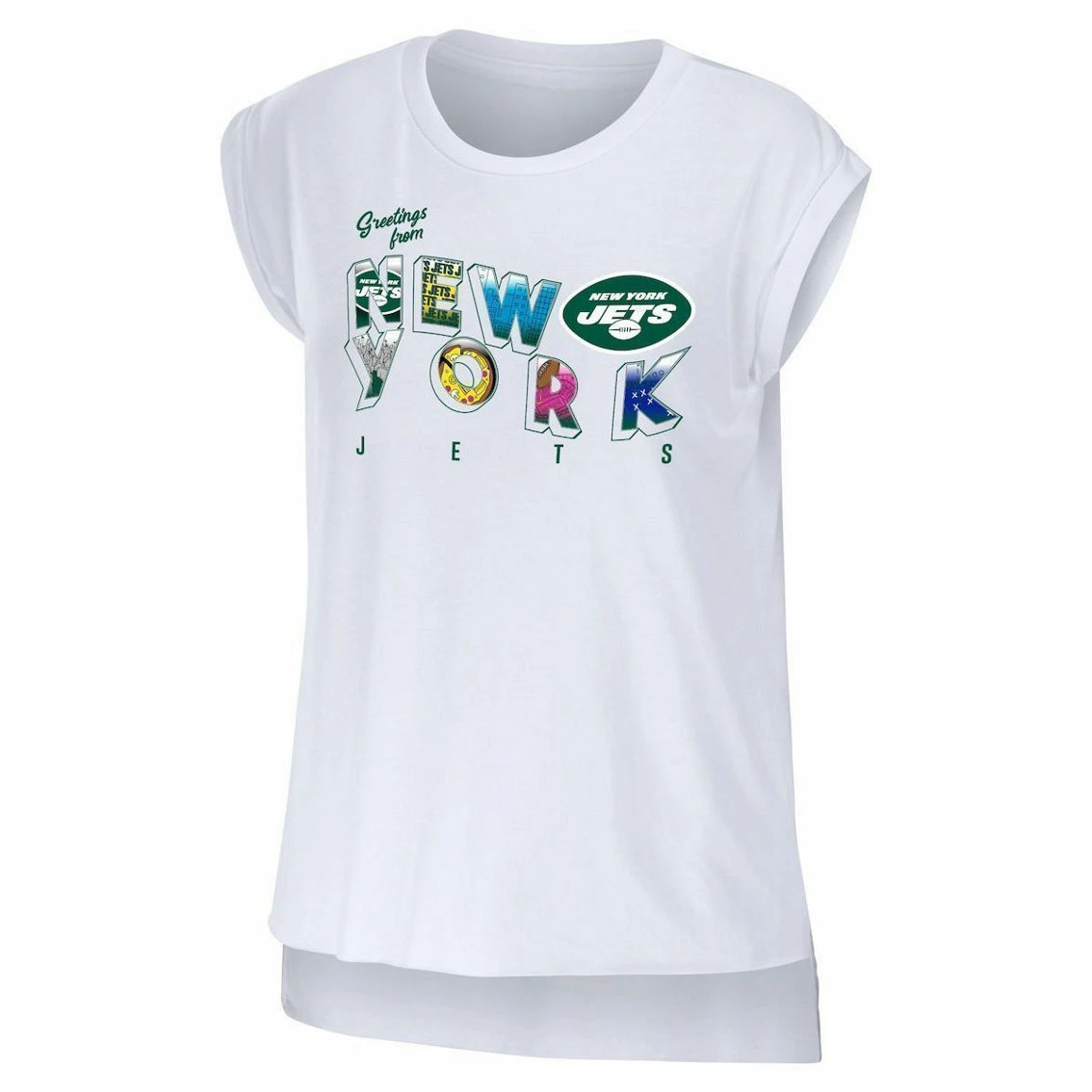 WEAR By Erin Andrews Women's White New York Jets Greetings From Muscle T-Shirt
