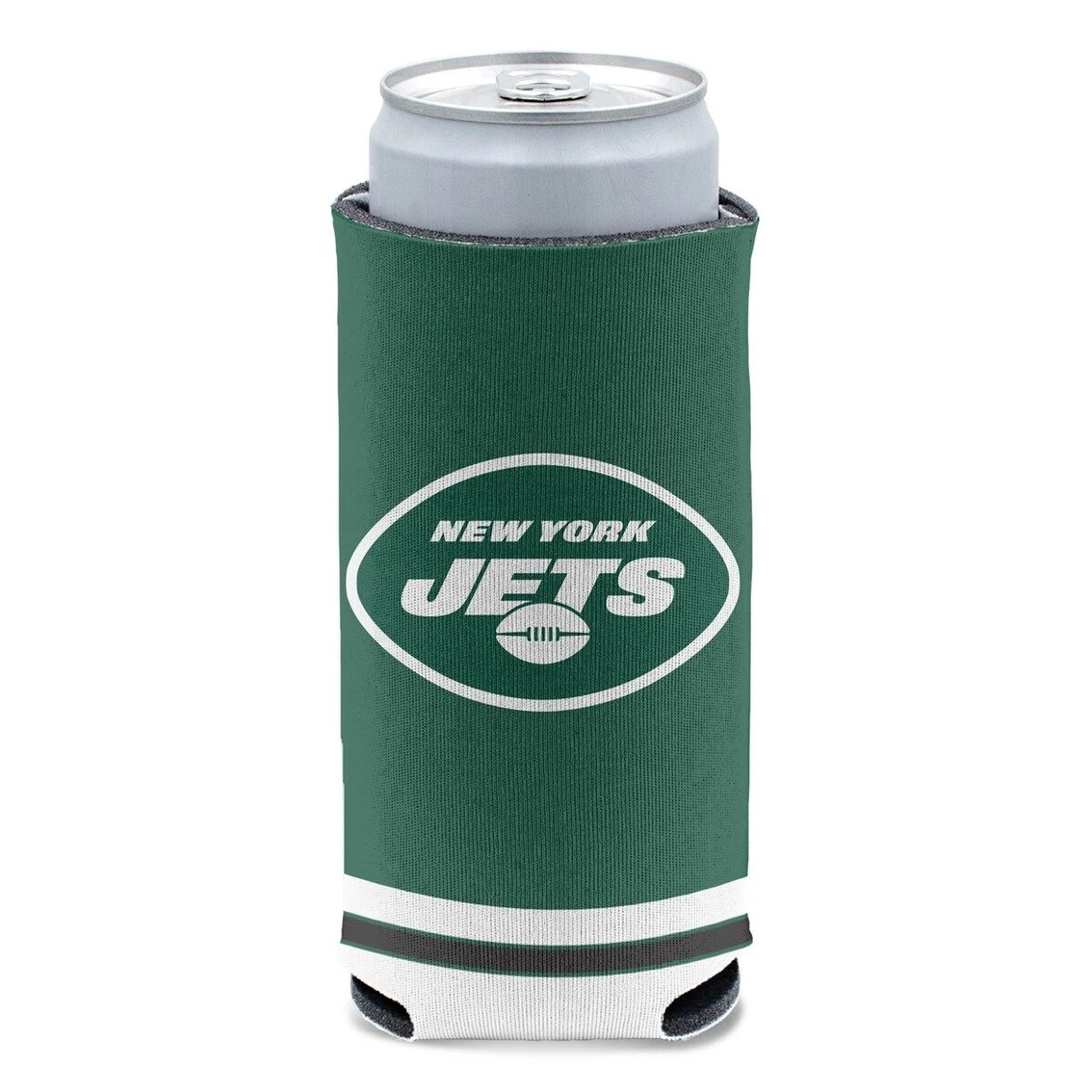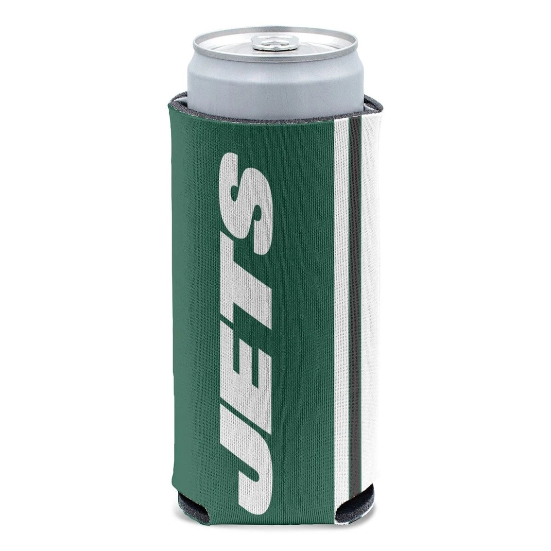 - Crafted by WinCraft, this slim can cooler features bold New York Jets details and folds flat for easy storage.