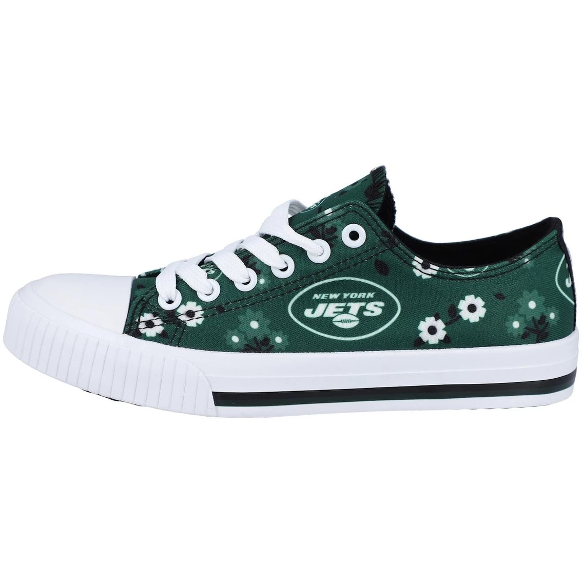 - Kick off any New York Jets outfit with these Flower Canvas shoes from FOCO. The closed, round toe and padded insole make for an extremely comfortable game day experience. An allover print of team graphics makes your New York Jets fandom loud and clear.
